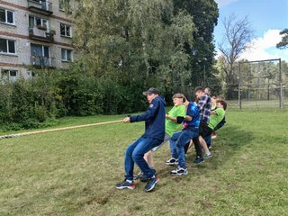 Mūsu skolas pašpārvaldes jau otro gadu draudzējas ar Rīgas 4. pamatskolas skolēniem un pedagogiem. Ir bijuši daudz kopīgu, izzinošu un priecīgu pasākumu. Un šajā mācību gadā mūsu sadarbība turpinās. Eiropas sporta nedēļas ietvaros mūsu skolas pašpārvaldes skolēnus un pedagogus uzaicināja uz virves vilkšanas sacensībām starp abām skolām. Un saulainajā 23.septembra pēcpusdienā 14skolēni un pašpārvaldes vadošie pedagogi Inga un Ieva devās ceļā.
