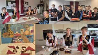 Svētki sākās pagājušo nedēļu, kad skolēni devās sakopt mazu daļu Latvijas- grābām lapas Vērmanes dārzā. Pati svētku nedēļa mums bija ļoti piesātināta- gan Mārtiņdienas tirgus, kas notika 10.novembrī, gan svecīšu aizdedzināšana pie skolas. Emocionāls Brāļu kapu apmeklējums, Latvijas kūka un svētku koncerts ar projekta Latvijas Skolas soma atbalstu greznajās Splendid Paalace telpās.