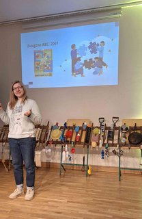 A.Beitiks prezentēja pieredzi, kas gūta starptautiskajā Erasmus+ projektā “SOUNDS OF OUR HEARTS” tulkojumā “Mūsu sirds skaņas” , akcentējot jaunas idejas un metodes darbam ar izglītojamajiem.
